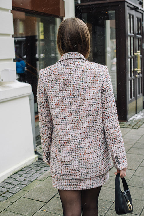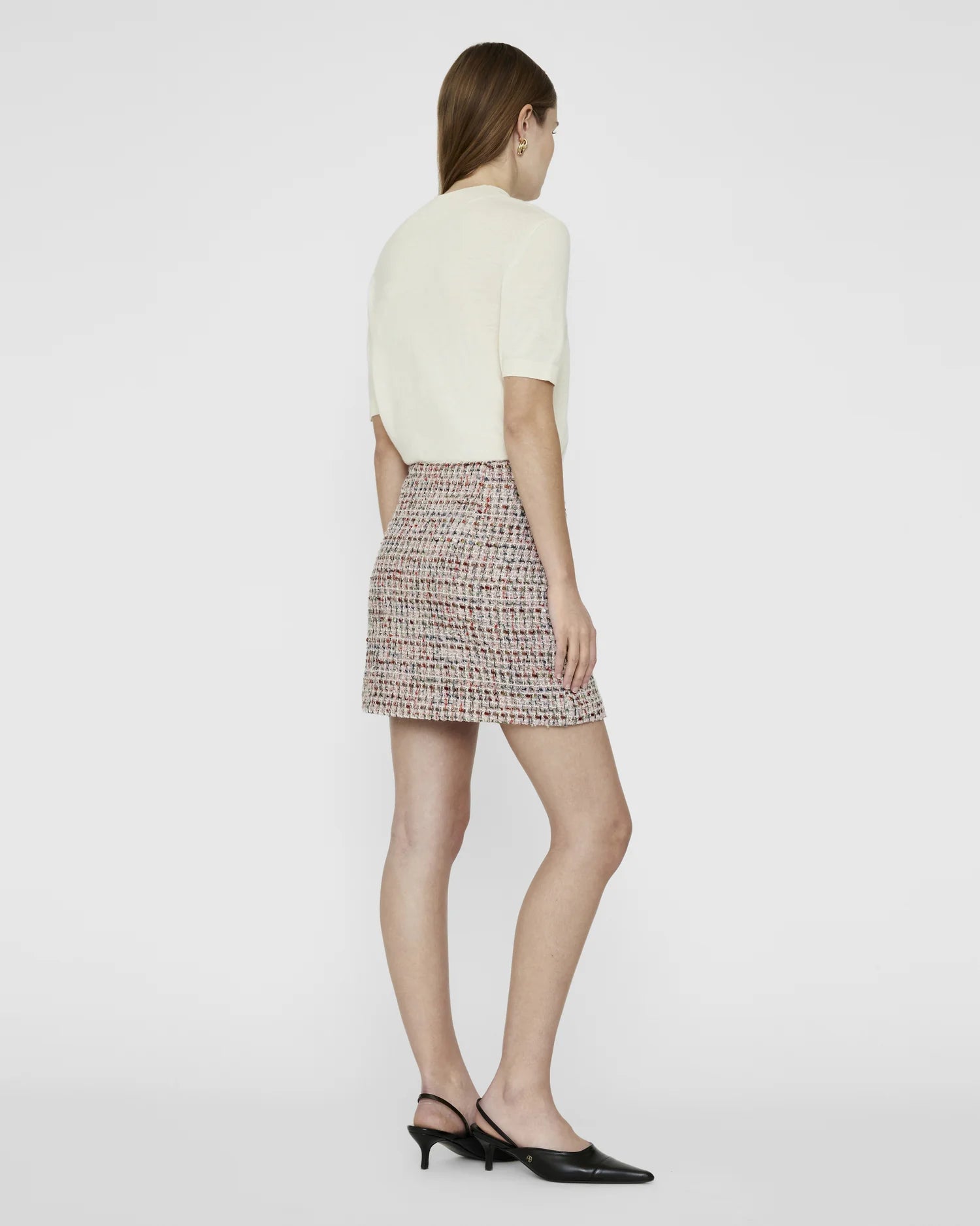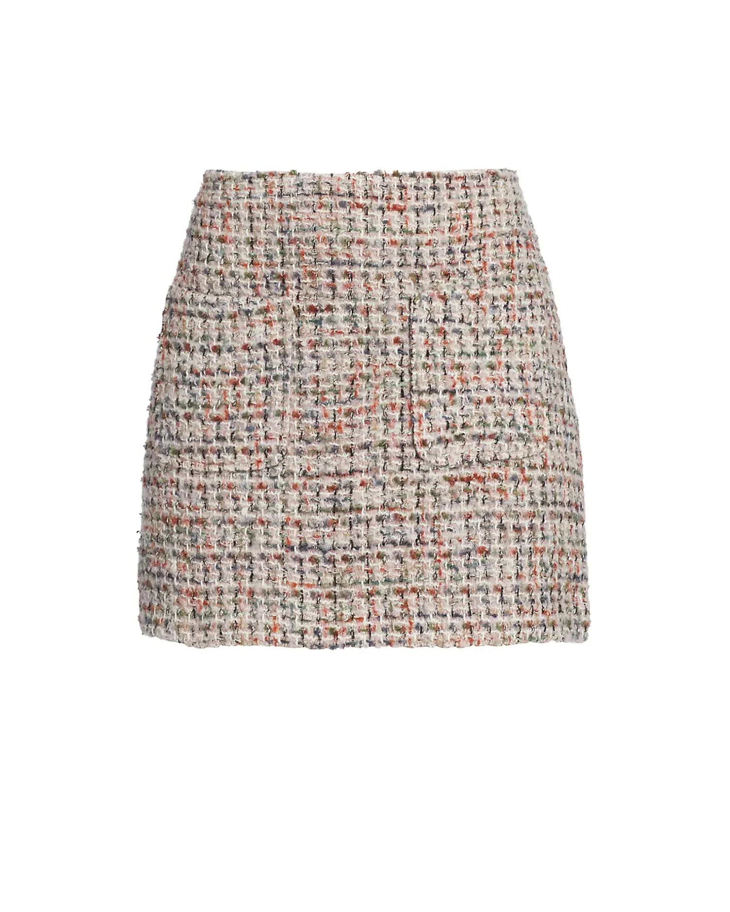 Adalynn miniskirt is crafted of a warm wool blend. Flaunting a tweed design, this piece is finished with front patch pockets.