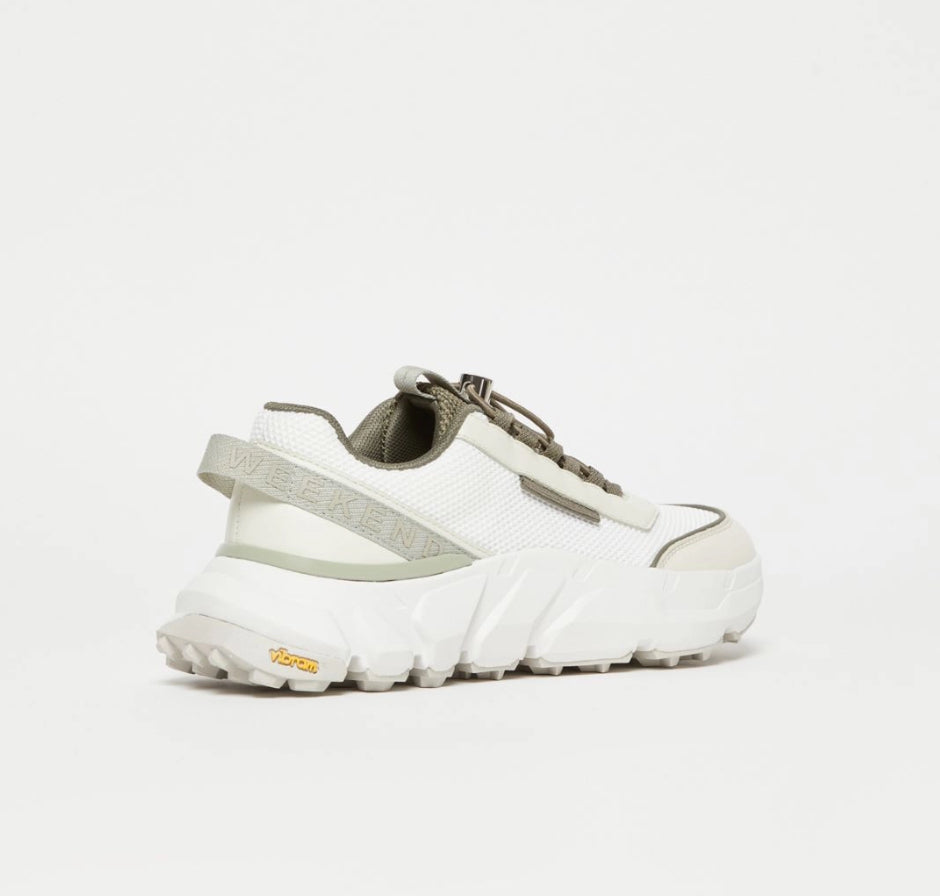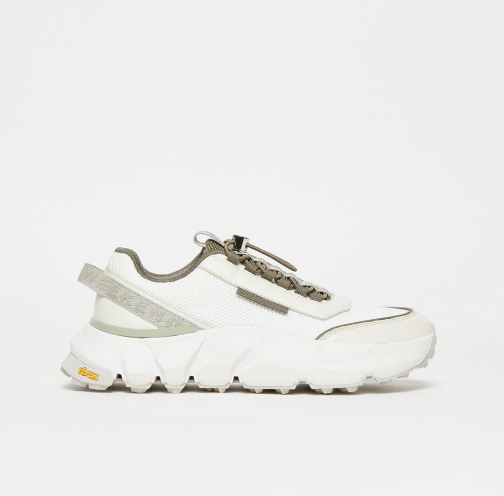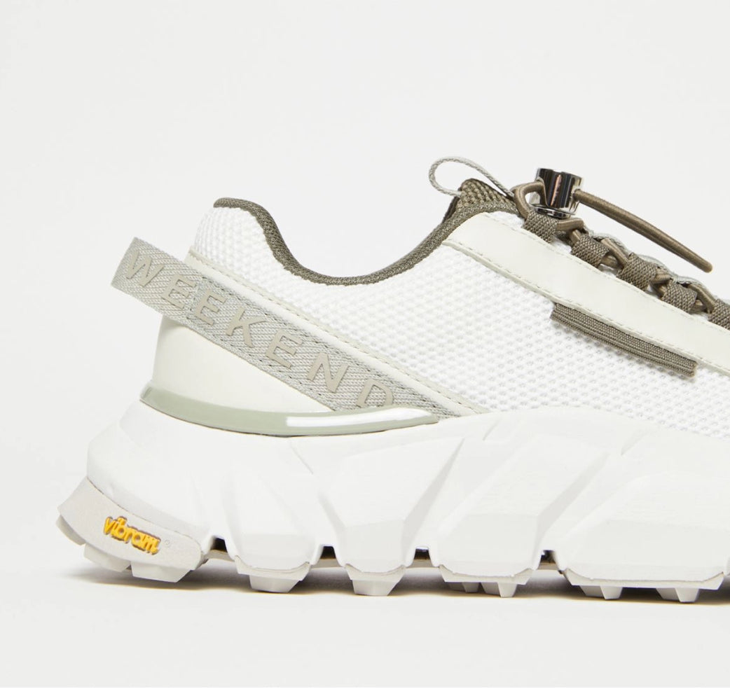 Lace-up low-top sneakers in technical mesh fabric featuring contrasting leather details. The design boasts elastic laces with drawstring detail and a Vibram sole, for a comfortable fit which ensures stability and safety in every situation. Lined with contrasting fabric, customised with high-frequency rubber Weekend Max Mara logo detail and embellished with a branded grosgrain heel tab.