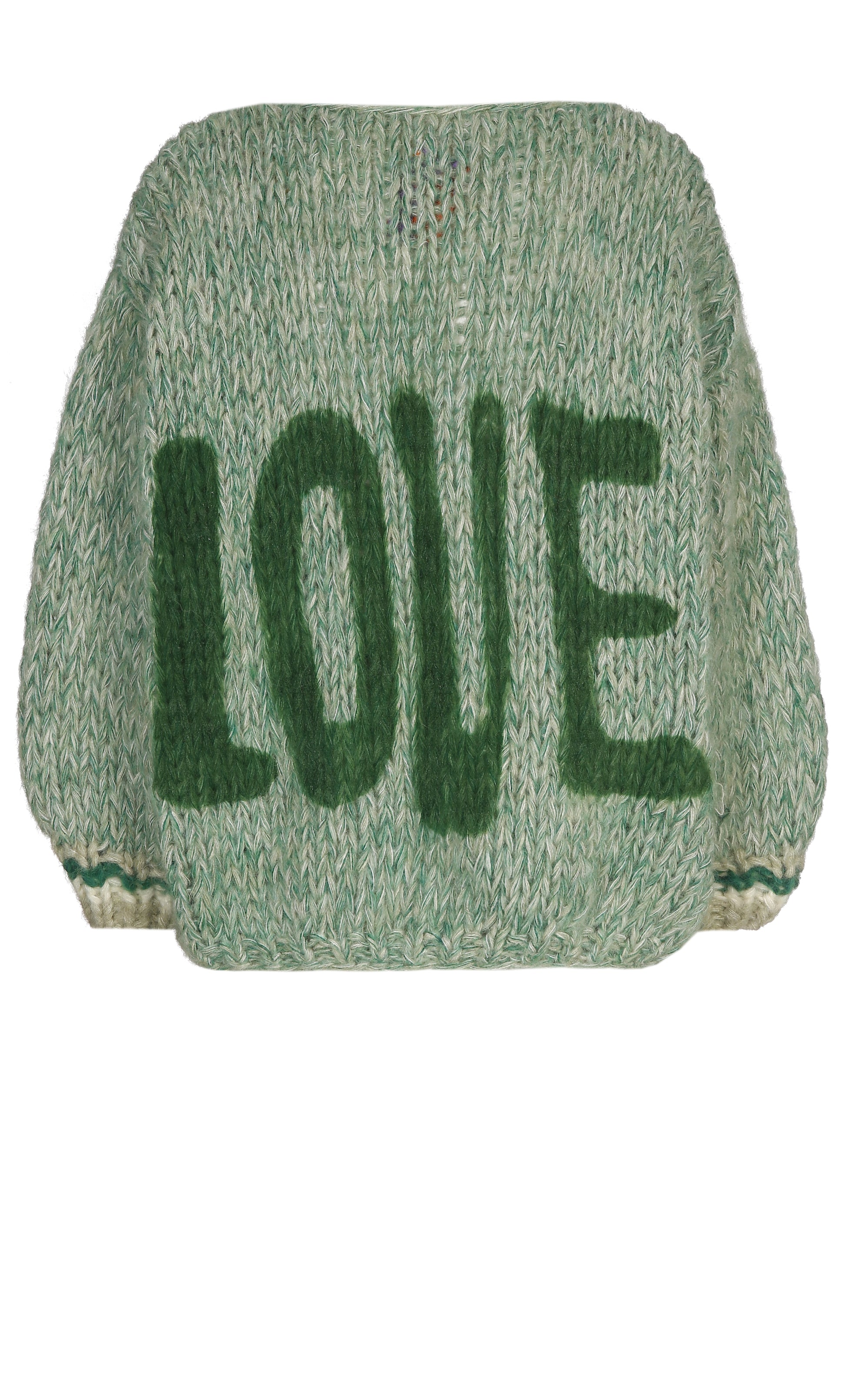 Alpaca Pullover Short Green/Sage/White Graffiti 'LOVE'