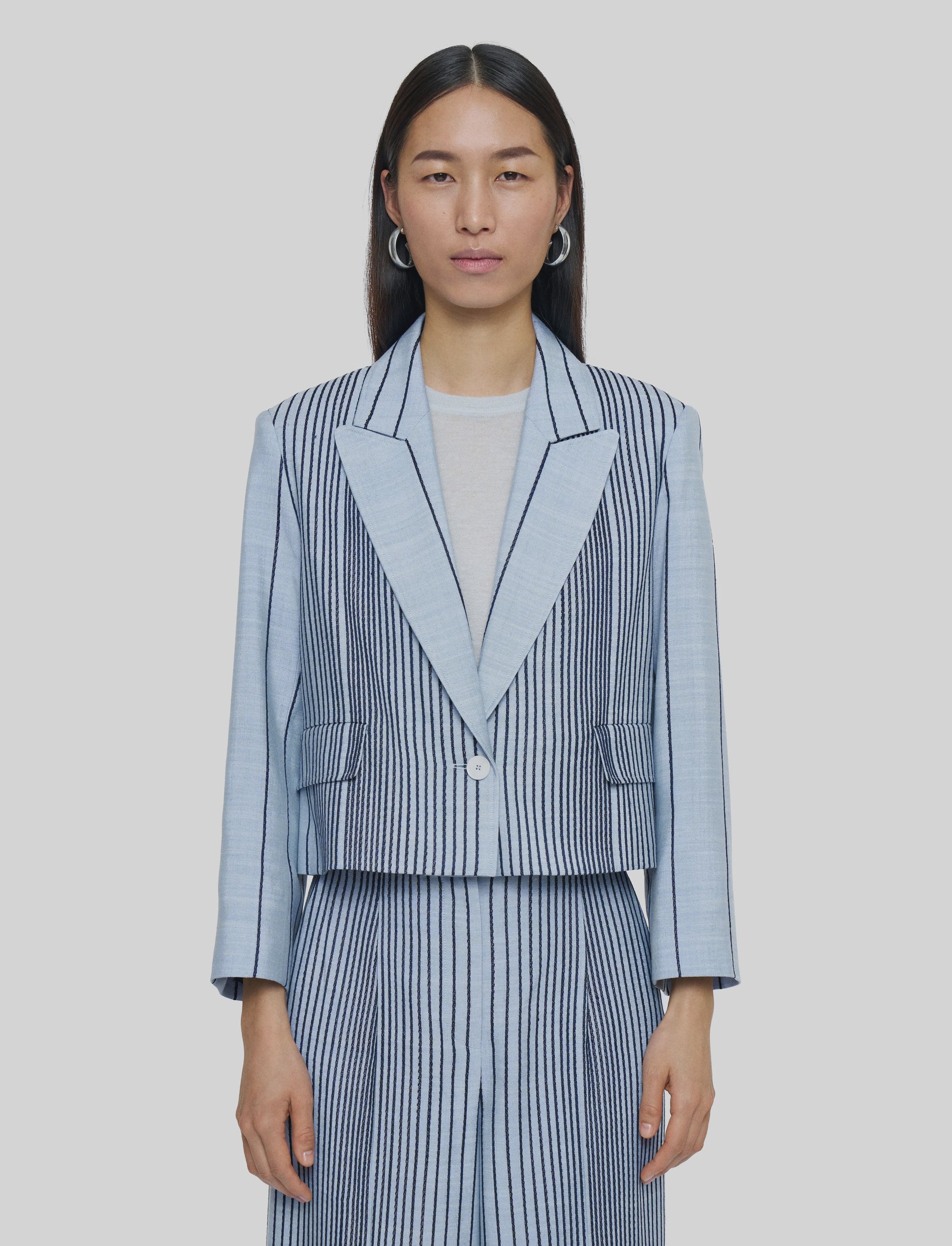 The Berlier Embroidered Stripes Jacket is a relaxed fit, cropped jacket, crafted from a viscose blend. This striking jacket showcases exceptional craftsmanship through its striped embroidery and modern silhouette.