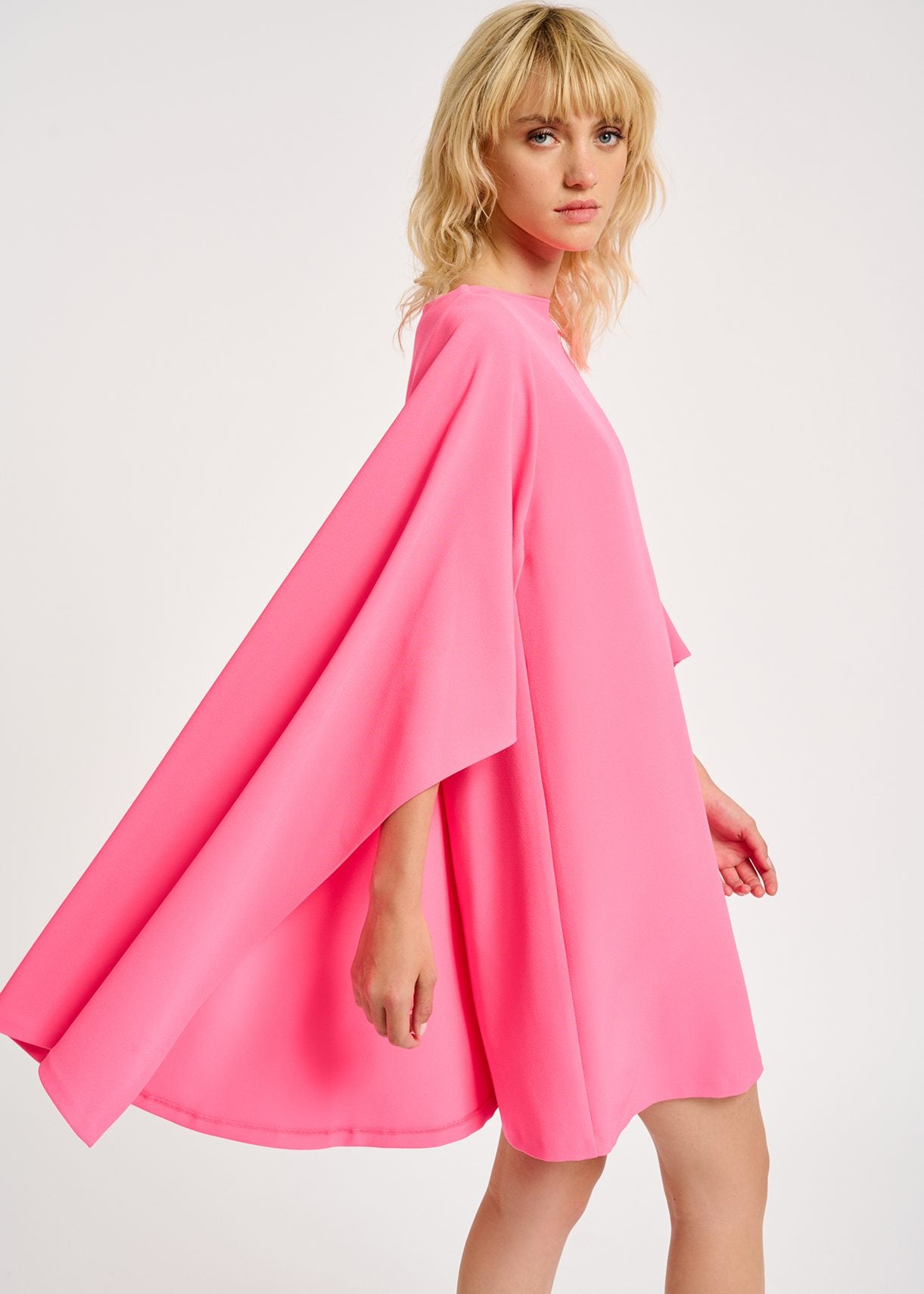 Turn some heads...for all the right reasons. Mini dress comes with 3/4-length sleeves that cascade down into the cape overlay at the back. The sleek A-line silhouette is expertly detailed with inverted seams for a clean finish.