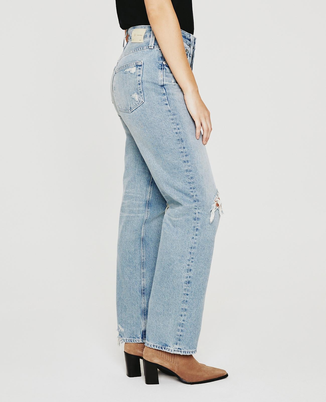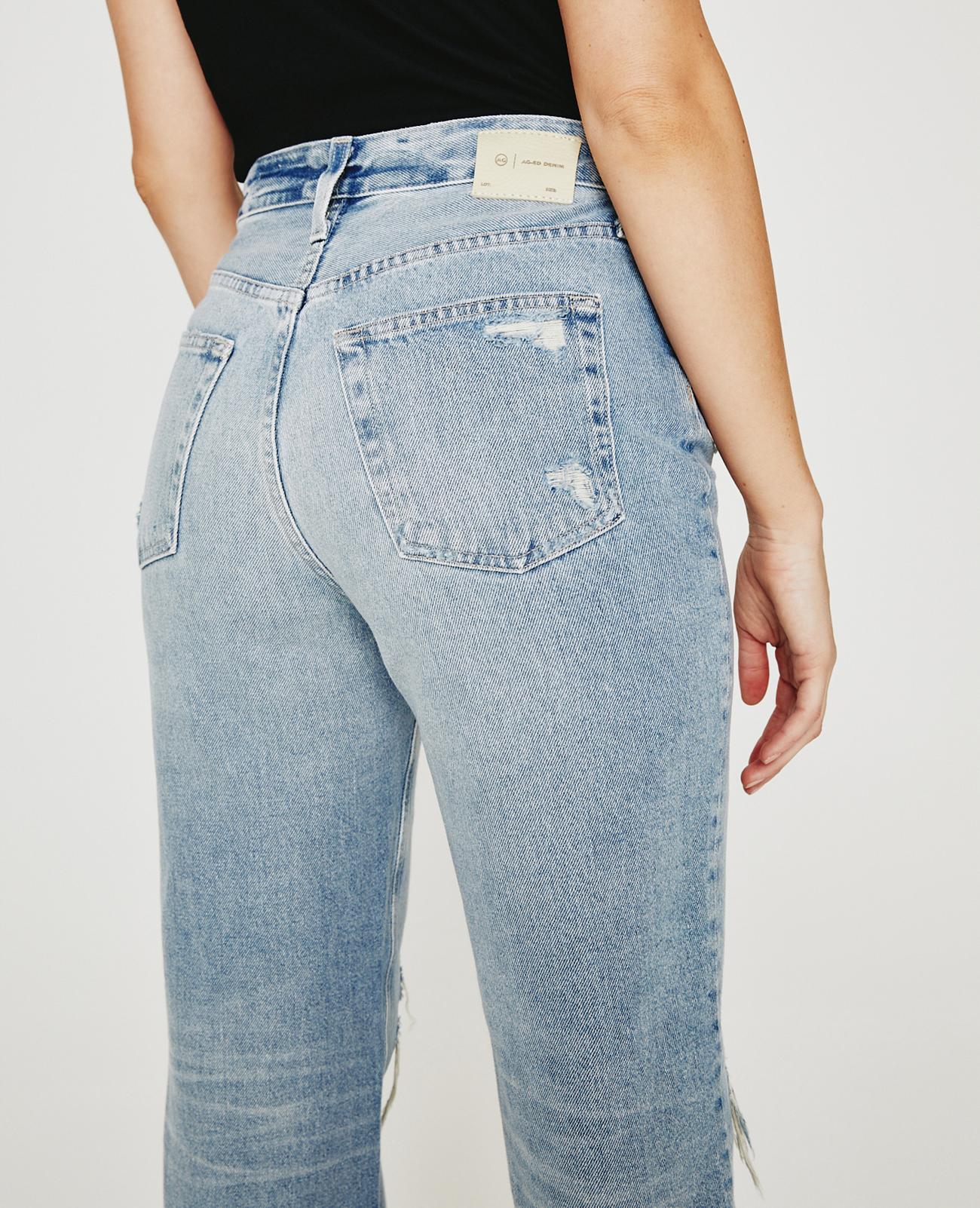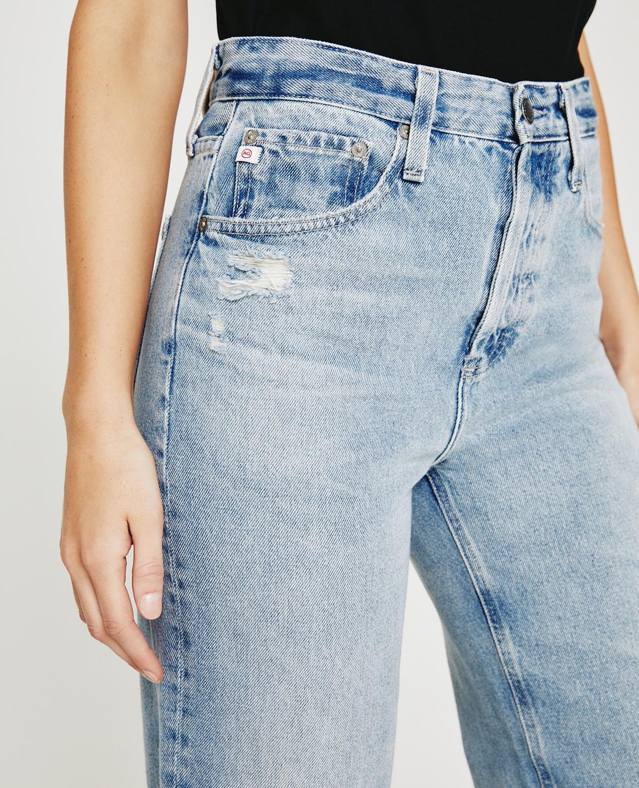 The Clove jean is a relaxed vintage straight in a 21-year light indigo wash with destruction at the knees, pockets, and hem. This relaxed-fit jean for women is cut with wide legs in a slight A-line shape and made from 12.75 oz. Savior Rigid Denim of 100% cotton. A four-button fly adds to the vintage character.