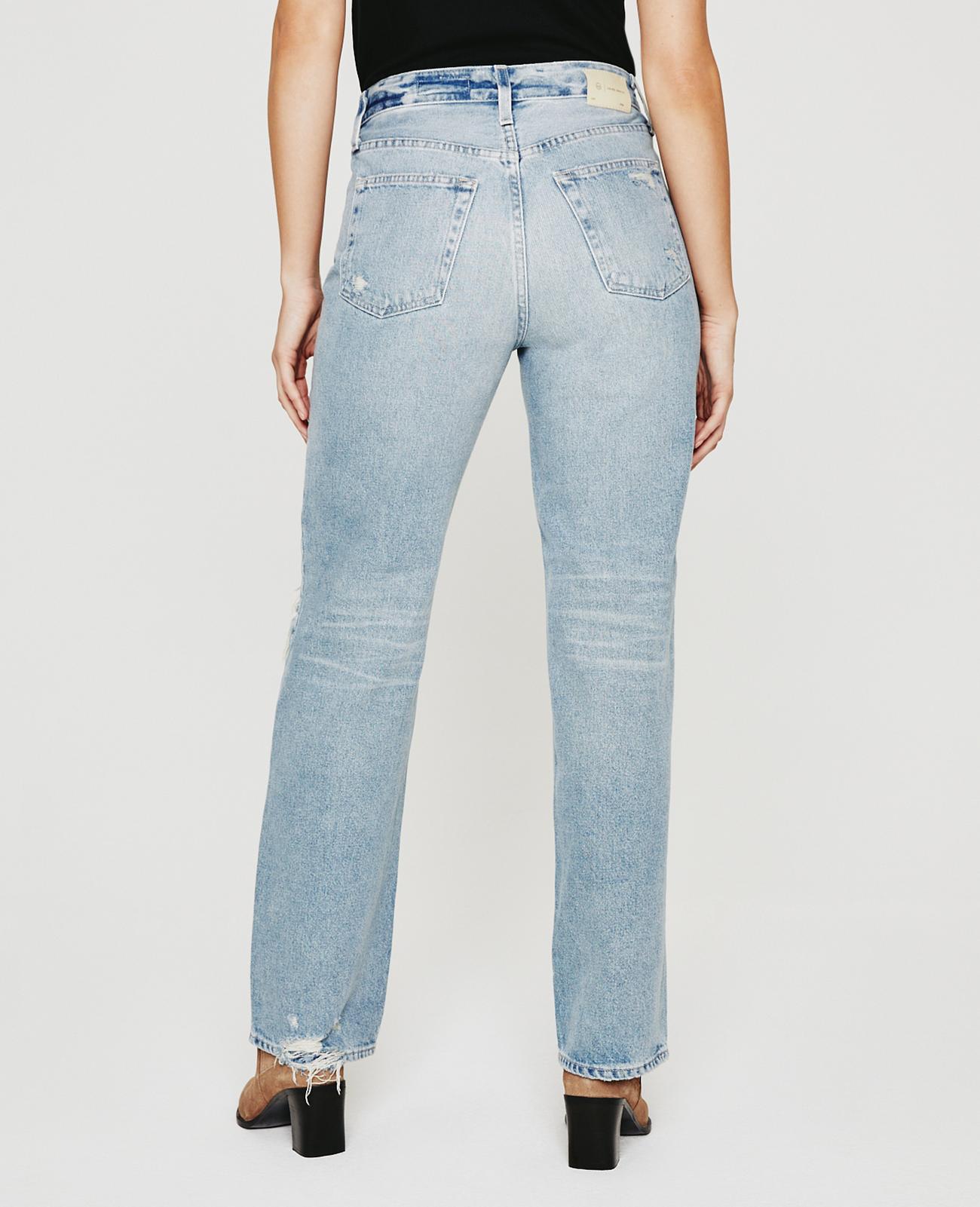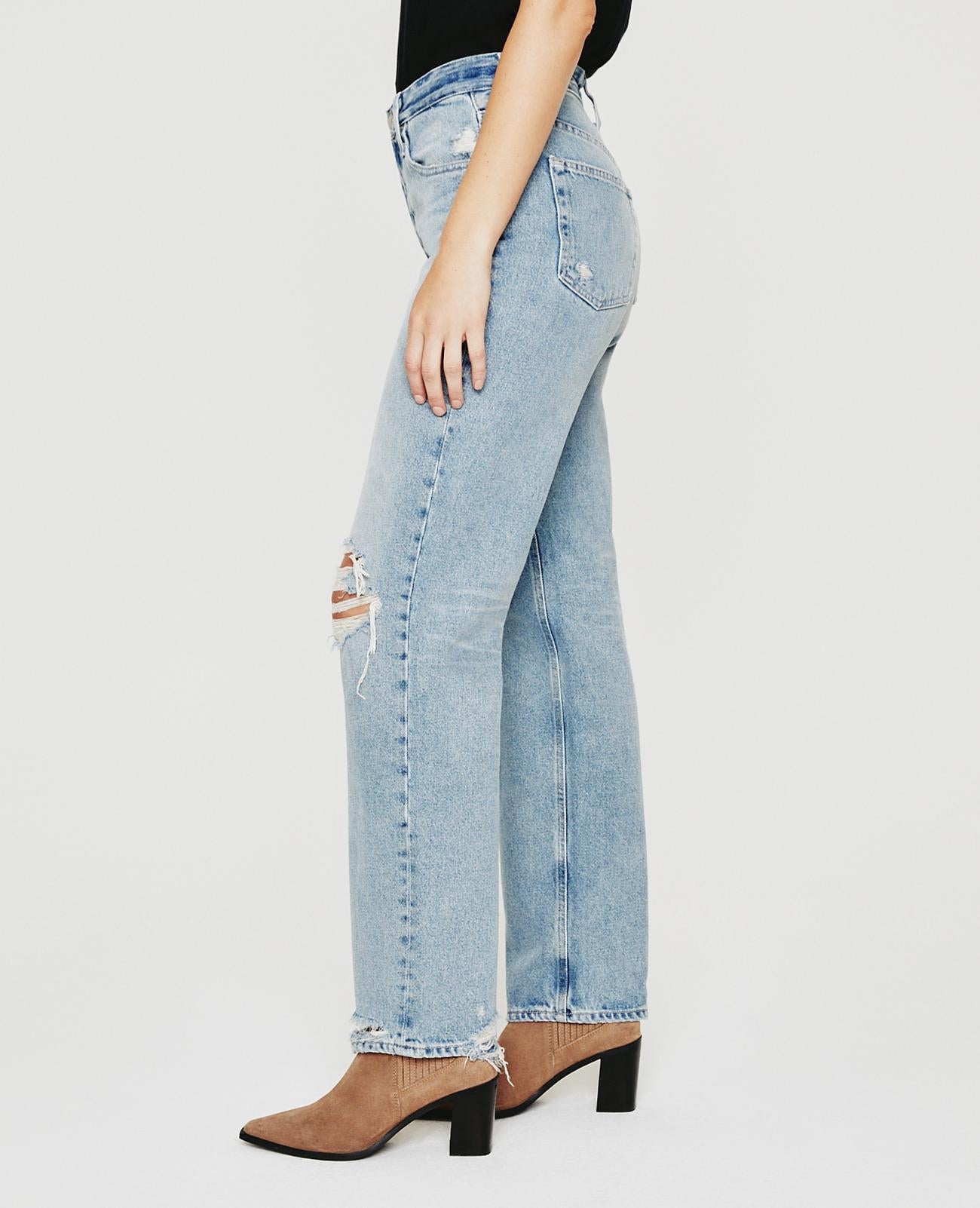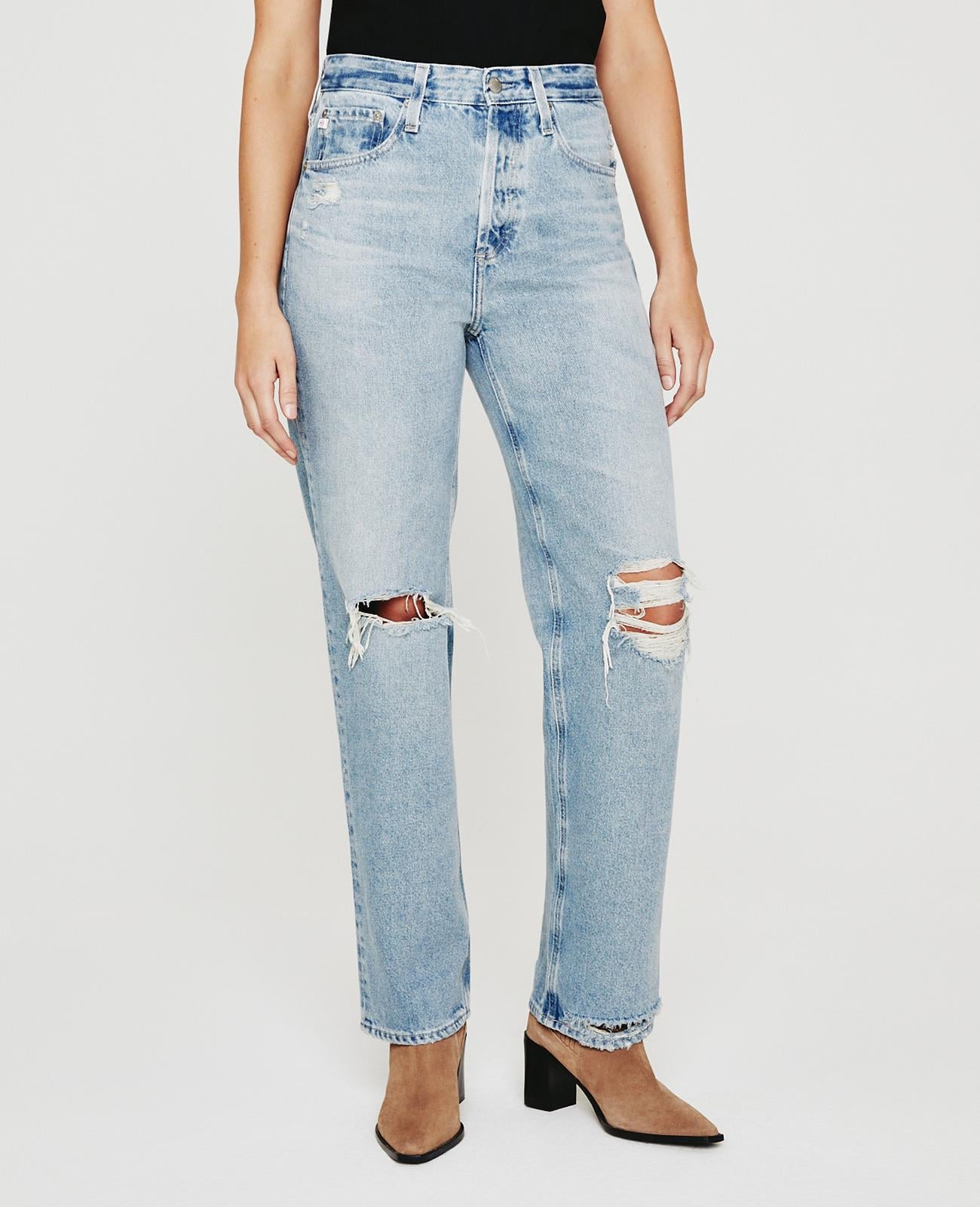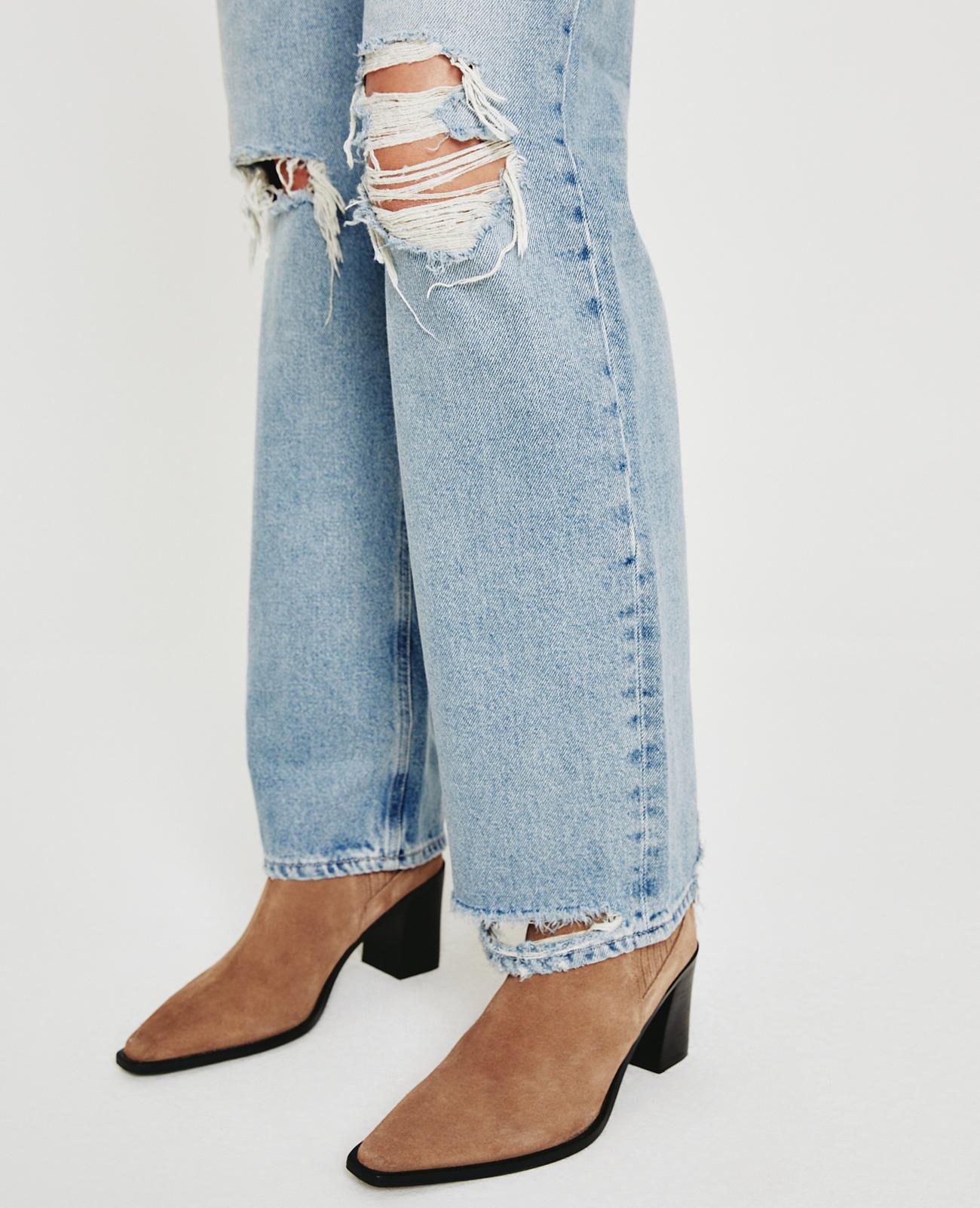 The Clove jean is a relaxed vintage straight in a 21-year light indigo wash with destruction at the knees, pockets, and hem. This relaxed-fit jean for women is cut with wide legs in a slight A-line shape and made from 12.75 oz. Savior Rigid Denim of 100% cotton. A four-button fly adds to the vintage character.