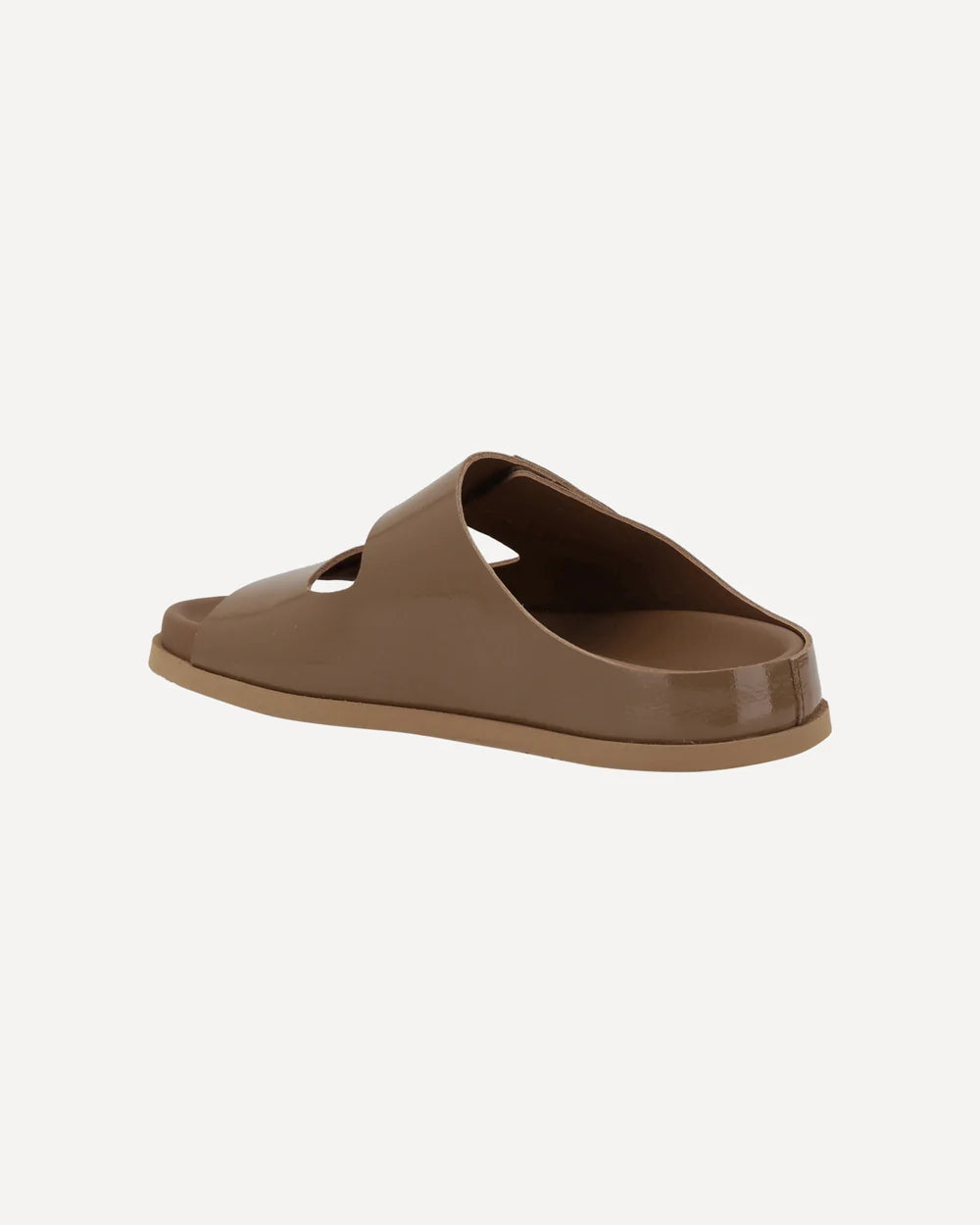 Pedro García's Dominika leather Sandals feature a round toe and a sleek patent leather design. The two straps on the front are adjustable with Velcro, ensuring a personalized and comfortable fit. The anatomical insole ensures optimal comfort, while the flat sole provides stability. The contrasting logoed insole adds a distinctive touch to the model.