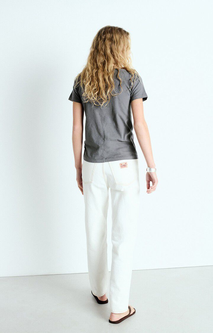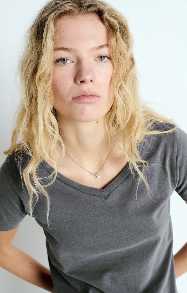 The Gamipy short-sleeved t-shirt for women has a slim fit and a V-neck. The fine cotton fabric is brushed on the inside for a soft, comfortable peach-skin feel. Versatile, wear it on its own or under a knitted top for a natural and authentic style.