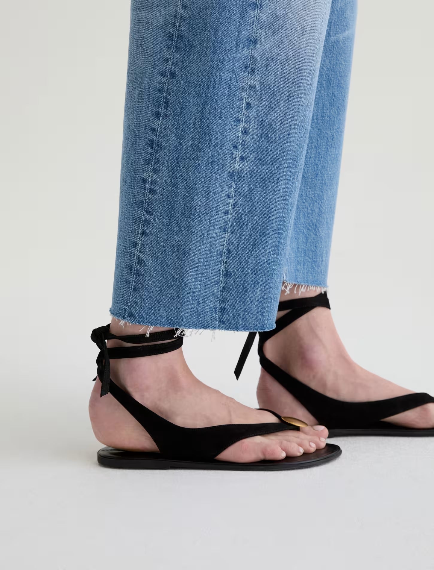 The Hattie Crop is a high-rise barrel made from non-stretch denim. In an AG-ed™ light wash to resemble 17 years of authentic wear, it is designed with raw hems, and offers a structured shape with a casual, lived-in finish.