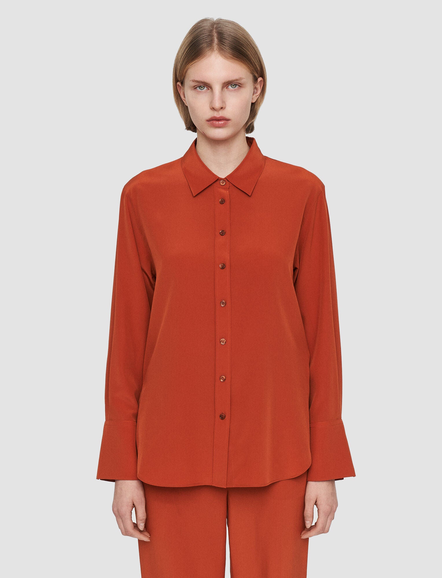 The Silk Crepe de Chine Joe Blouse is a relaxed fit blouse, crafted from a lightweight silk crepe which has a smooth, crisp hand feel. This classic, button-up style is finished with a curved and stepped hemline.