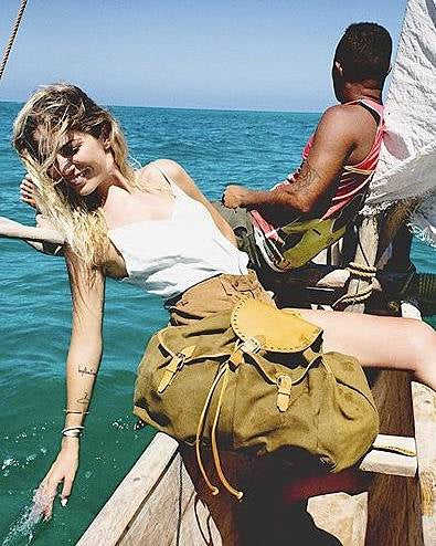 Fantastic nice backpack in canvas and leather from Mes Demoiselles. Classic model that closes with drawstring, lid with buckle, front pockets and beautiful gold rivets on the leather details.