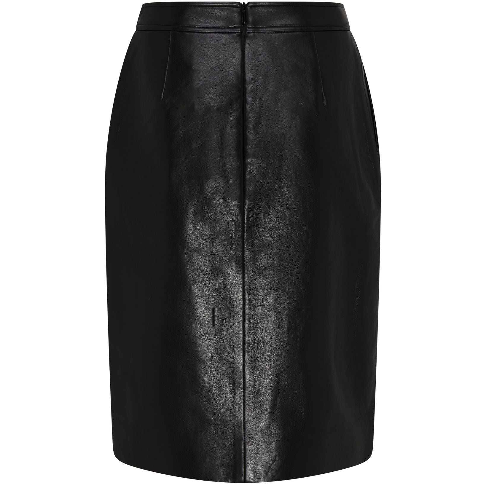 Presenting the "Tyra" Leather Skirt by renowned designer Anine Bing. This sophisticated pencil skirt, made from the highest quality smooth leather, embodies elegance and modern style. Its classic cut with a delicate front slit reaching the knees subtly accentuates the feminine silhouette, adding a unique charm.