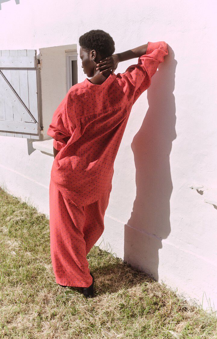 Ysoli trousers have a wide cut and low waist for a flowing and casual style. Made from a lightweight fabric with a peach-skin feel, they will win you over with their softness, flow and matt appearance. The bright, summery print adds a touch of freshness and personality. Easy to mix and match, these trousers are perfect for every moment of the day, from the seaside to a night out on the town.